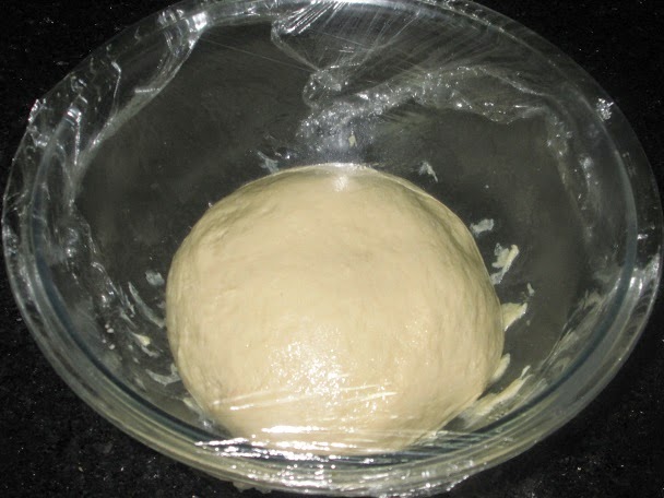 5. Locker mit Frischhaltefolie abdecken und etwa eine Stunde gehen lassen, bis das Volumen fast verdoppelt ist.