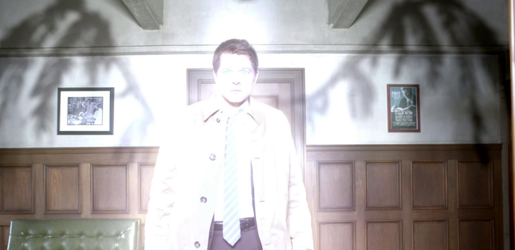 kun Castiel esitellään Supernaturalin kauden 4 avausjaksossa, saimme mahdollisuuden nähdä hänen taivuttavan siipiään kahden varjon heittämänä seinää vasten hänen takanaan. Tämä ei kuitenkaan ollut ensimmäinen kerta, kun Castiel oli yrittänyt näyttäytyä Deanille ”Lazarus Rising” – jakson aikana, jossa vastikään kuollut hunter oli kaivanut tiensä ulos omasta haudastaan. Deanin yrittäessä päästä perille paikallisella huoltoasemalla, hän alkaa kuulla kovaa soivaa ääntä ja sokaisevaa valoa. Maa hänen alapuolellaan alkaa järistä juuri kun ikkunat särkyvät hänen ympärillään.