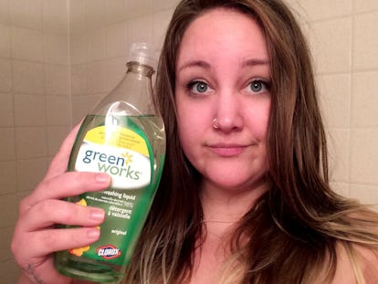 Considérant que le savon à vaisselle est utilisé pour se débarrasser de la « graisse dure », cela semblait une solution plutôt simple. Mais cela fonctionnerait-il vraiment? J’ai décidé à ce stade que je n’avais rien à perdre. J’ai choisi un savon à vaisselle écologique (moins il y a de produits chimiques, mieux c’est, en ce qui me concerne), je l’ai apporté sous la douche et je suis allé en ville. Parce que le savon à vaisselle est beaucoup plus dur que le shampooing lorsqu’il s’agit de « dénuder » vos cheveux, j’ai veillé à les concentrer sur mon cuir chevelu et à éviter de laver mes extrémités plus sèches / plus sensibles.