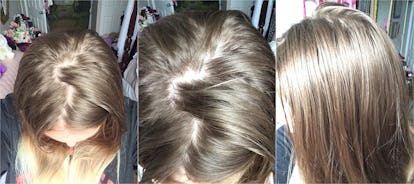 Après avoir terminé le shampooing, je pouvais déjà sentir la différence dans mes cheveux – ils grinçaient extrêmement lorsqu’ils étaient mouillés et me sentaient beaucoup plus « légers » sur mon cuir chevelu. J’ai fini par mettre un revitalisant intense sur les pointes (pour les sauver de la super-force du savon à vaisselle), puis j’ai doucement séché mes cheveux à la serviette avant de les sécher au brushing.