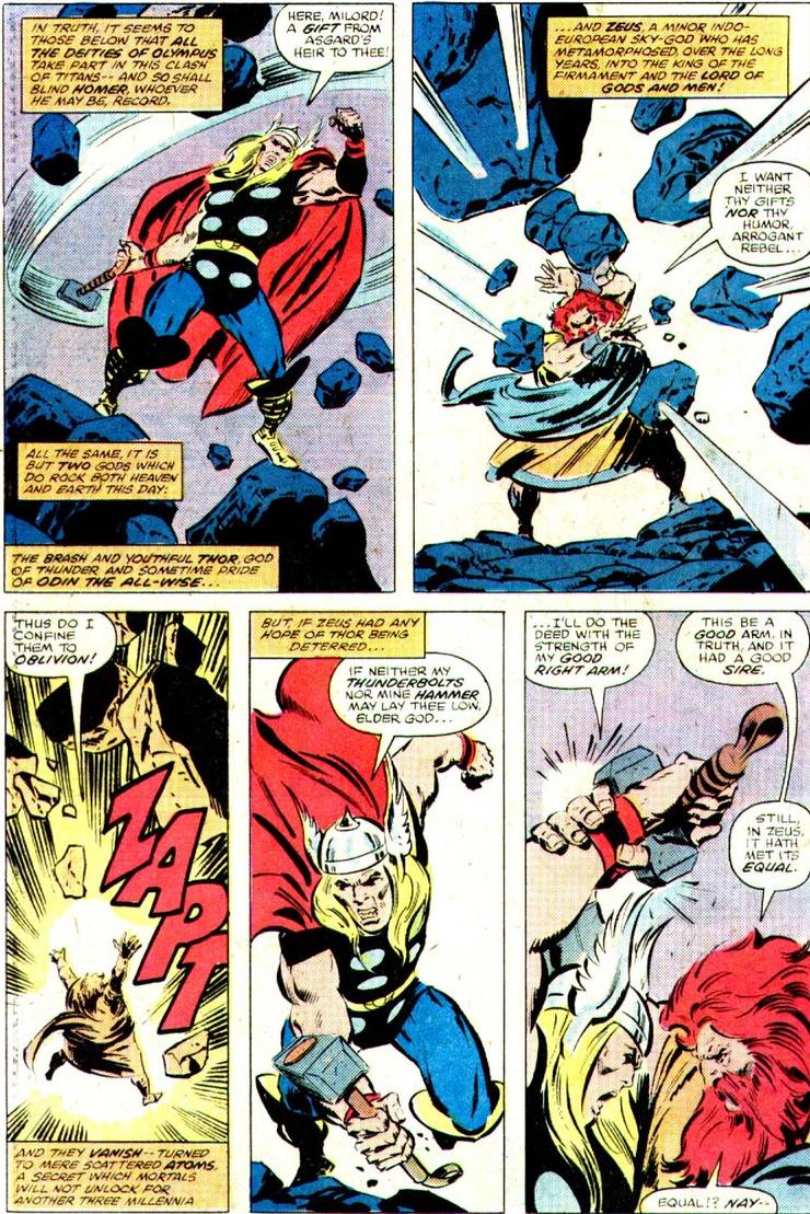 しかし、私はおそらくゼウスの上にオーディンを支持する最高の議論は、ロイ*トーマス、ジョン*ブセマとトニー*デズニガによるトール年次#8に来たと思います。 この物語はトロイア戦争の再話であり、記憶喪失のトールだけが戦いに巻き込まれ、ギリシャの神々が干渉し続けたときに怒ってしまいました。 だからトールはゼウス自身を取り、ギリシャのすべての父に対して非常によく自分自身を処理しました。..