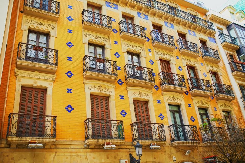 의 올드 타운 건물의 외관 총 16 개의 미슐랭 스타(3 개의 3 성급 레스토랑)가있는 산 세바스티안은 세계 어느 곳에서나 평방 미터 당 미슐랭 스타 레스토랑의 비율이 가장 높습니다. 그러나 산 세바스티안을 방문하는 음식 애호가들도 바스크 요리법에서 가장 전설적인 음식 중 하나 인 핀 토스를 맛보기 위해 구시 가지의 좁고 자갈길로 변함없이 끌립니다.