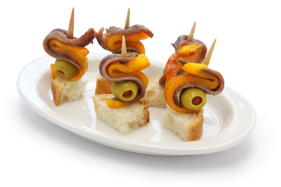 멸치,올리브,파프리카를 곁들인 핀 토스