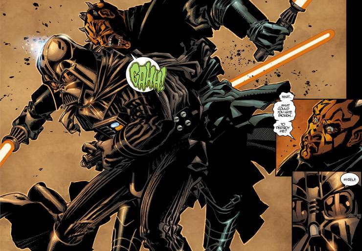 이 팬들은 베이더와 마울이 전군에서 싸우고 볼 수있는 유일한 결투이지만,자신의 경로가 거의 캐논에 교차 몇 가지 다른 경우가 있습니다. 에 오비완 과 아나킨#1,작성자 찰스 술,마르코 체체 토,안드레스 모사,젊은 파다완 아나킨 스카이 워커 그가 다스 몰의 외모와 전투 스타일을 닮고 모방하도록 수정 한 훈련 드로이드에 직면 해 있습니다. 두 사람은 스타 워즈 반란군의 시스 행성 말라코르에 다시 회의에 가까이 온다. 두 사람은 직접 충돌하지 않지만,망치는 베이더의 종교 재판관의 짧은 작업을한다.