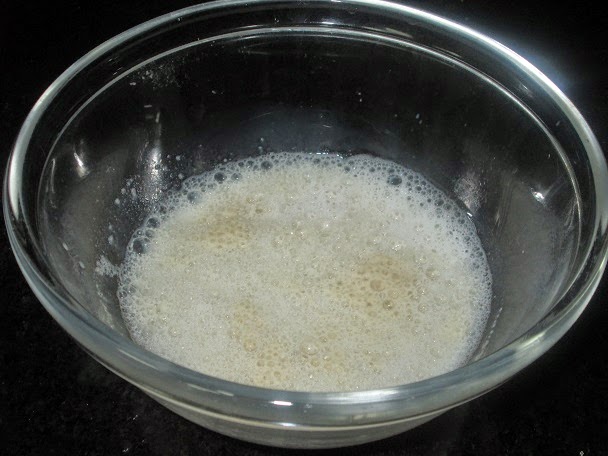 1. 따뜻한 물 및 따뜻한 우유를 함께 혼합 하 고 효 모에 저어. 약 5 분 동안 옆으로 앉히십시오.