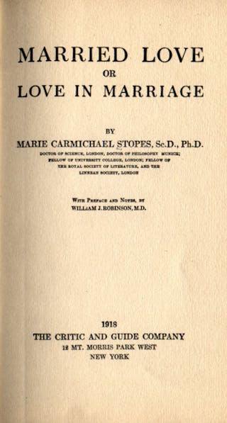 Marie Stopes była wybitnym naukowcem akademickim i stała się najmłodszym doktorem nauk w Wielkiej Brytanii. Ale kiedy 26 marca 1918 roku ukazała się jej książka „Married Love”, całkowicie zmieniła ona jej życie i zapewne życie milionów mężczyzn i kobiet. Książka zawierała szczegółowy opis stosunków seksualnych, a jej publikacja pozwoliła na łatwiejsze omówienie tego tematu-który od dawna był tabu-zarówno przez mężczyzn, jak i kobiety.