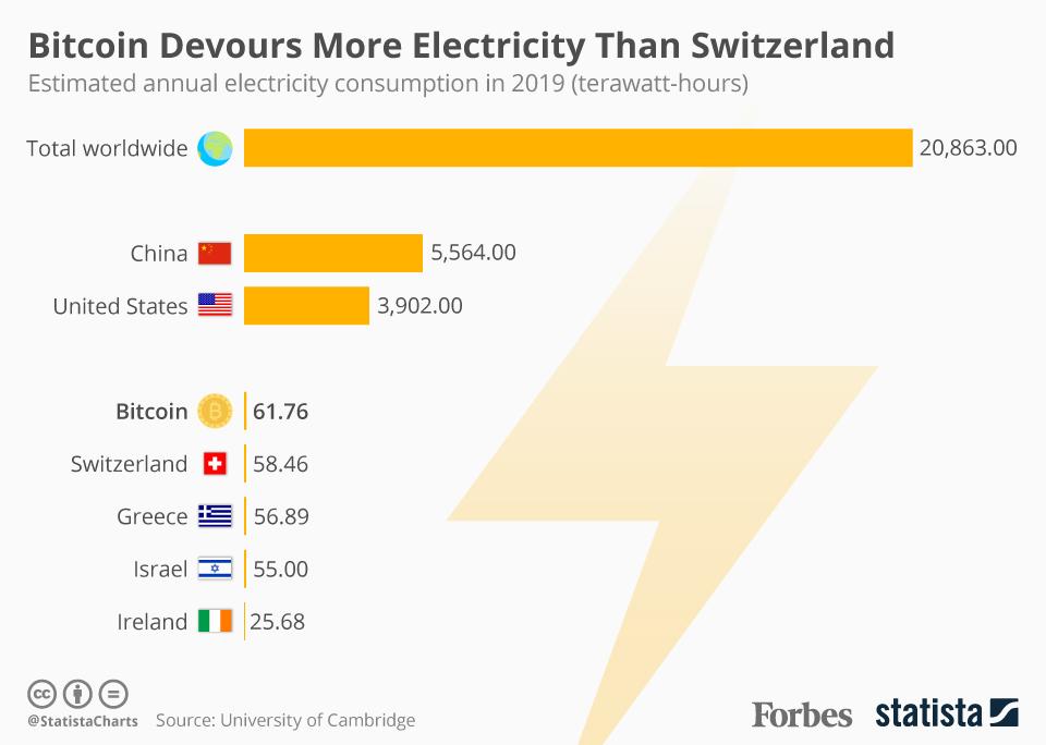 A Bitcoin consome mais electricidade do que a Suíça [Infographic]